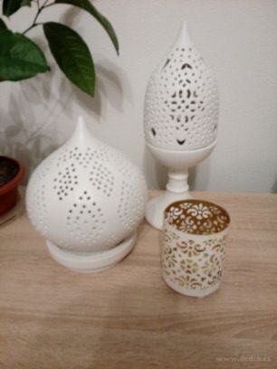 BALI CERAMIKA Świecznik tworzy ciekawe efekty świetlne dzięki ciekawej mozaice. kolor kości słoniowej. Ceramiczny świecznik na ceramicznej podstawce. Zdejmowne wieko. Wymiary: 16,5 x 16,5 x 22,5 cm