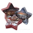 Zestaw 3 metalowych pudełek w kształcie gwiazdy z pokrywkami z zimowymi motywami.