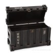 Drewniana skrzynia do przechowywania, postarzona, przypomina kontener. Realistyczne odwzorowanie szczegółów. Ciekawy design, wykonano z drewna. Czarna, 41,5 x 18 x 26 cm.