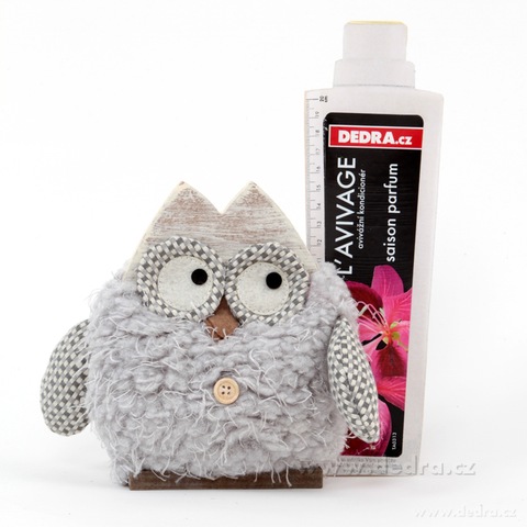 Dekoracyjna sowa, połączenie drewna i tkaniny