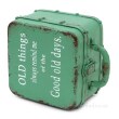 Duży metalowy pojemnik w kształcie walizki do przechowywania większych rzeczy, celowo postarzony, ozdobiony napisami, zamykany na ogromną metalową klamrę. Rozmiar: 20 x 20 x 12 cm RUSTICAL Ta kolekcja doda oryginalności twojemu wnętrzu, sprawdzi się również w restauracji, kawiarni czy pubie.