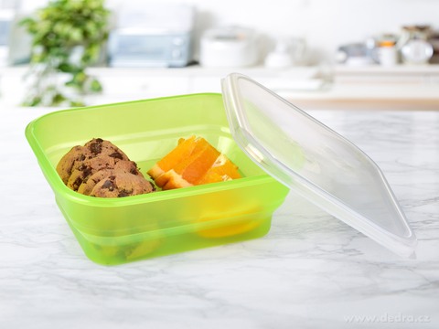 Wykonany z wytrzymałego tworzywa sztucznego do przechowywania różnych rodzajów żywności. Nadaje się do lodówek, zamrażarek, kuchenek mikrofalowych. Wymiary: dł.18 x szer. 15 x wys. 6 cm. Pojemnik idealnie nadaję się do przechowywania przekąsek np. w plecaku czy torebce.