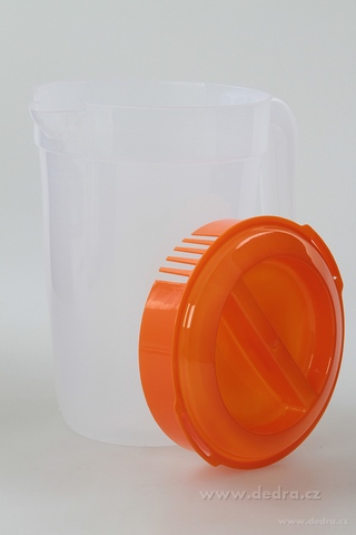 DZBAN z miarką pojemność 2000 ml. Dzbanek wykonany z wytrzymałego tworzywa sztucznego z praktyczną pokrywą i otworem do nalewania płynów. Wymiary: 20 x 15 x 24 cm.