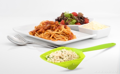 SZYBKOCEDZAKŁyżka wykonana z wytrzymałego tworzywa sztucznego. Idealna do odcedzanie gotowanychwarzyw, pierogów itp. Narzędzie można myć w zmywarce, nadaje się do kuchenki mikrofaloweji zamrażarki. Wymiary: długość 33,5 cm, długośćcedzaka 12 cm, głębokość cedzaka 6,5 cm.
