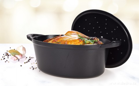 XXL owalny głęboki garnek/ brytfanna z samopodlewającą pokrywką kondensacyjną.