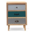 Elegancka szafka nocna z 3 szufladami, interesujący wzór. Może służyć za stolik w salonie, oranżerii, tarasie. Szafka pełni funkcję użytkową i dekoracyjną. Wymiary: szer. 43,5 x dł. 32,5 x wys. 63,5 cm.