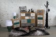 Szuflady są wyposażone w metalowe uchwyty w różnych wzorach i odcieniach. Każda z szuflad ma inaczej pomalowany front całość jest oryginalną ozdobą. Połączenie drewna i płyt MDF.