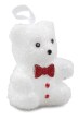 LUKSUSOWA ŚNIEŻNOBIAŁA DEKORACJA Wyjątkowe ozdoby choinkowe. 4 śnieżnobiałe błyszczące misie z czerwoną muszką i guzikami. Wysokość: 6,5 cm