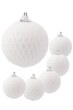 6 białych bombek z wypukłą strukturą, pokrytych brokatem,