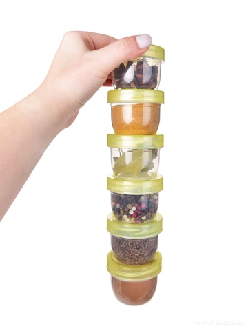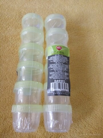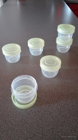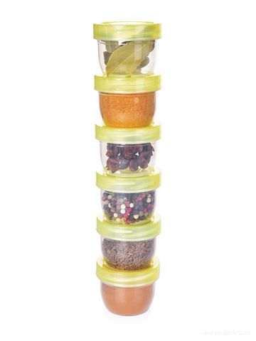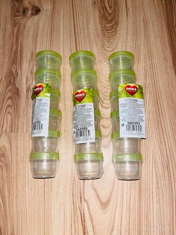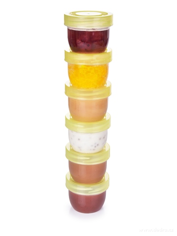 Pojemniki sprawdzą się podczas przechowywania jogurtów, małych porcji jedzenia. Również niewielkich przedmiotów np. śruby, guziki, szpilki itd. Komplet 6 pojemników wykonanych z mocnego tworzywa sztucznego z wiekiem. Pojemnik jest zakręcany, posiada gwint. Pojemniki nadają się do zmywarki, kuchenki mikrofalowej, zamrażarki, lodówki. Wymiary: śre...