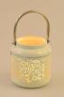Metalowy świecznik / latarnia w kolorze kremowym z ciekawym wzorem z miejscem na tealight. Może wisieć lub stać.