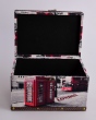 Kasetka dekoracyjna z romantycznym motywem, wykonana z drewna, pokryta ekoskórą i elementami metalowymi. Pokryta wewnątrz aksamitem, zamykana na metalowy zatrzask.