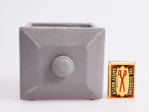 Kamionkowa kwadratowa osłonka dekoracyjna na doniczkę, w kształcie szufladki.