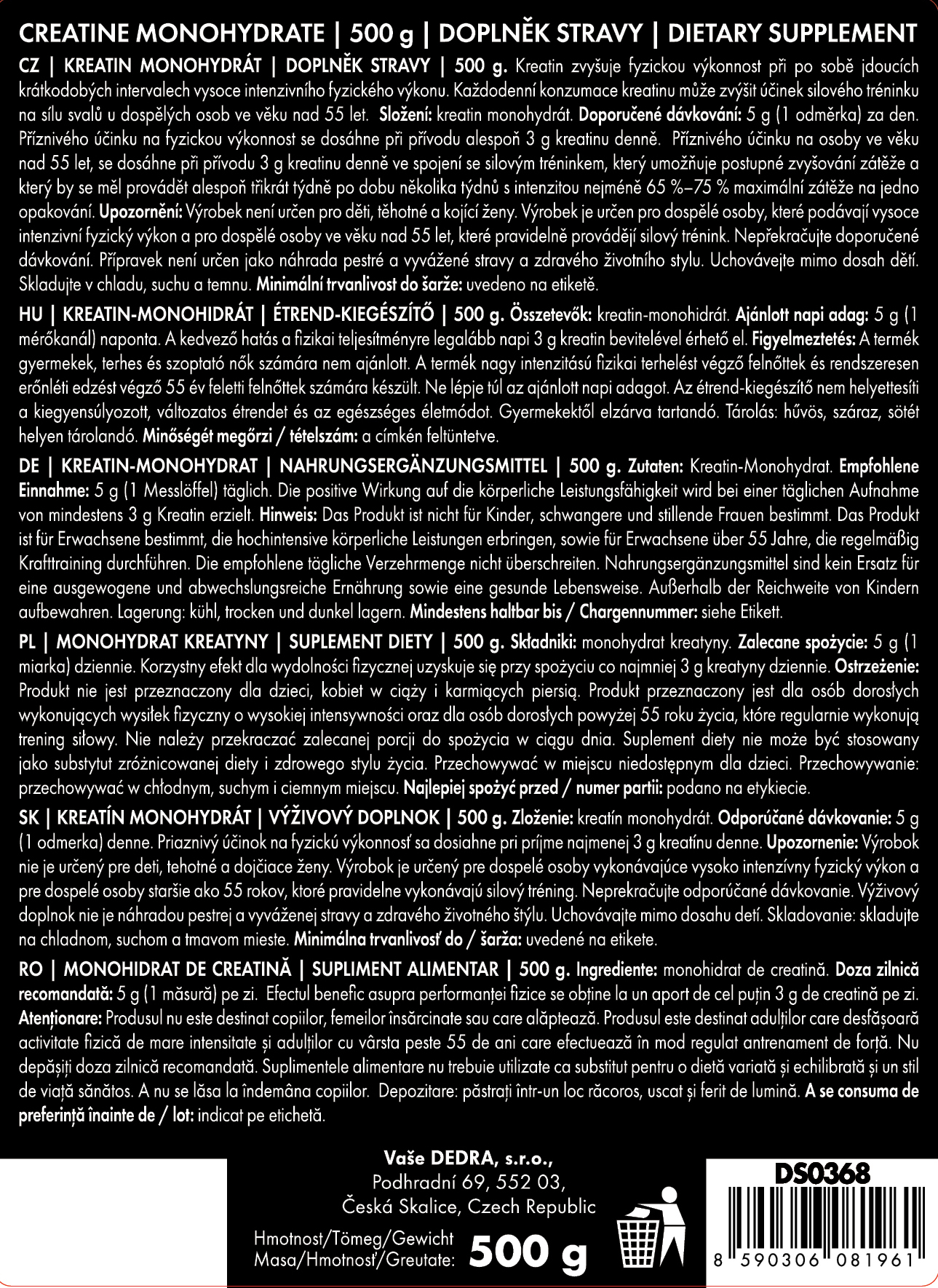 Kreatyna monohydrat w proszku 500 g to sprawdzony suplement diety dla wsparcia siły oraz wydajności fizycznej. Czysty skład bez dodatków, odpowiedni dla sportowców i osób aktywnych. Prosty w stosowaniu, idealny do codziennej suplementacji.