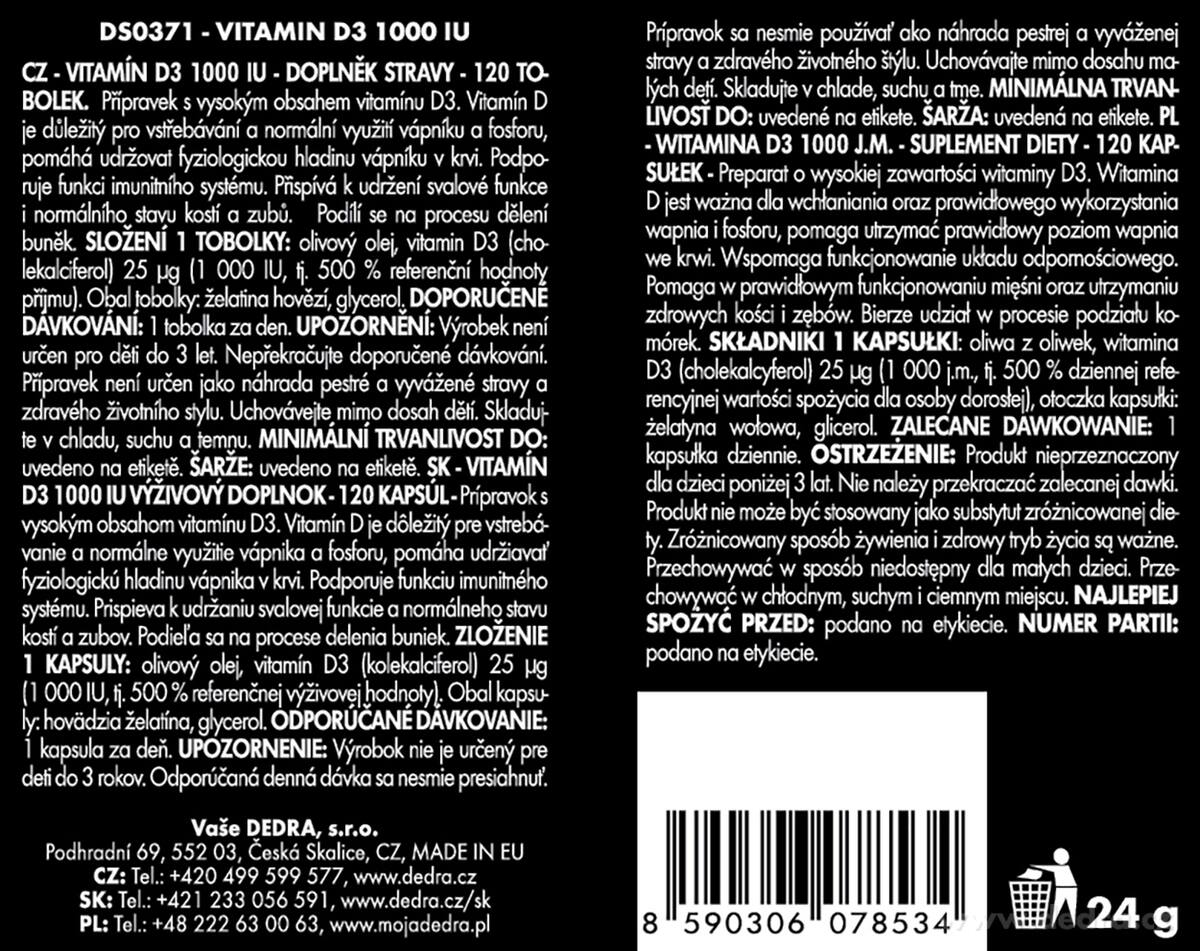 Producent / Importer: Vaše Dedra s. r. o., Podhradní 69, Česká Skalice, Republika Czeska
