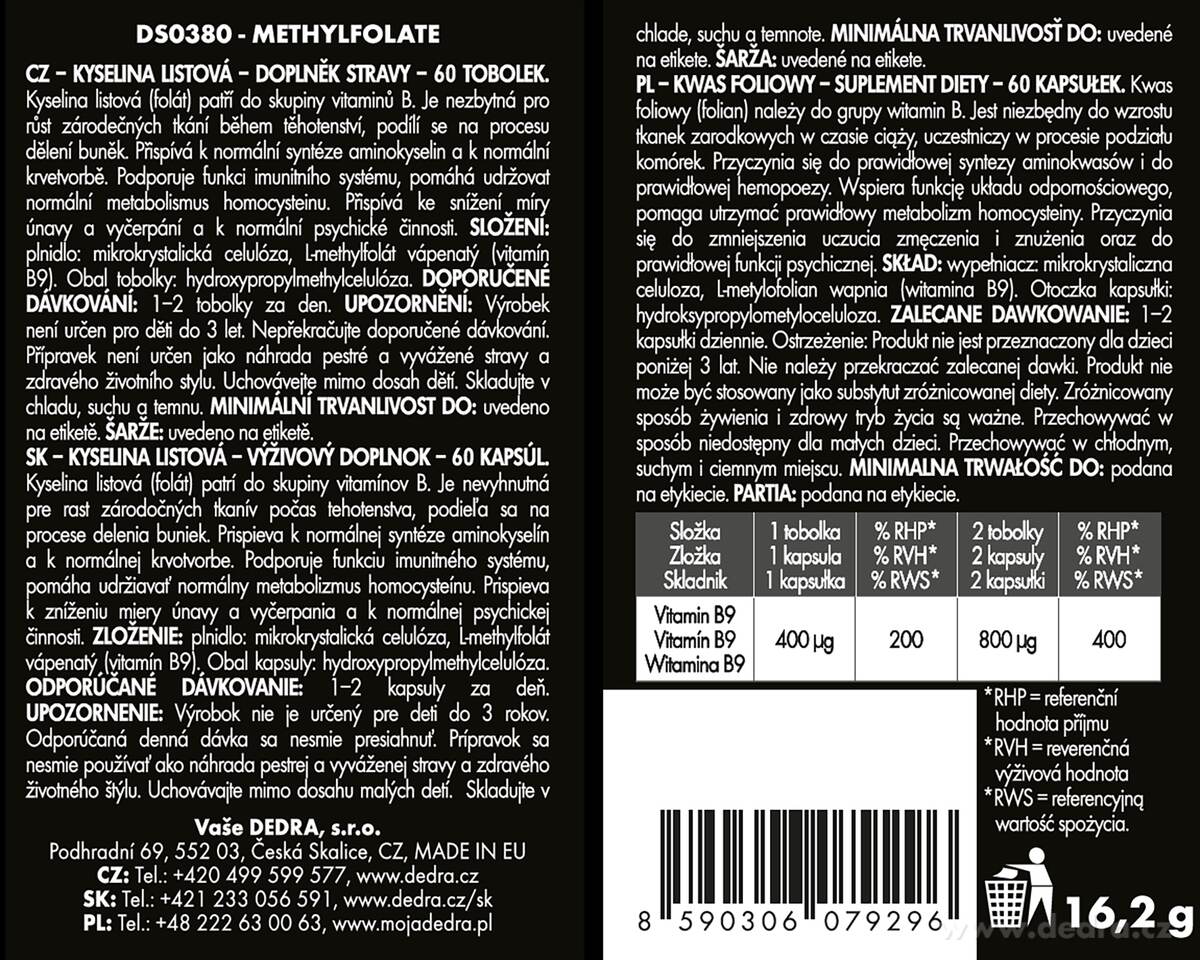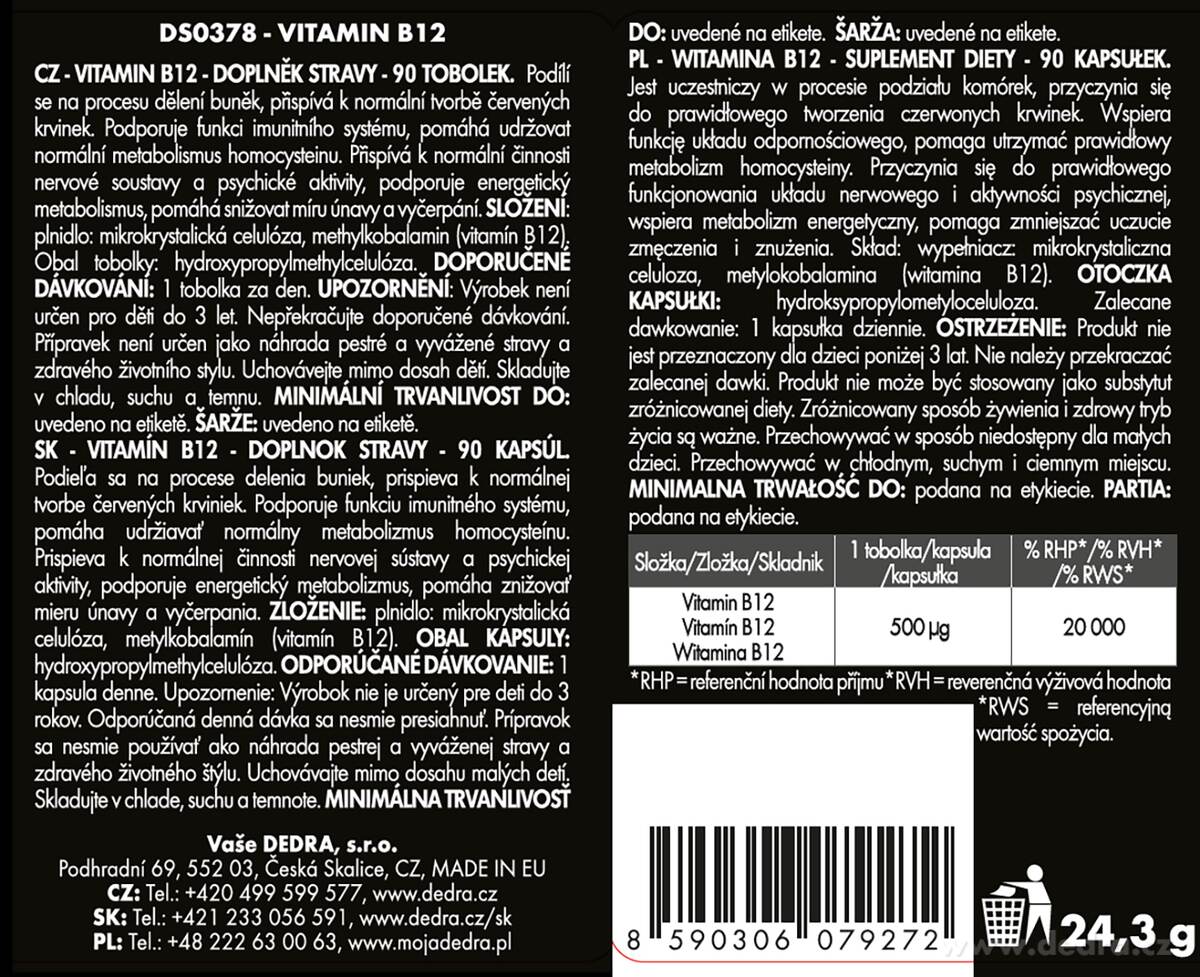 Producent / Importer: Vaše Dedra s. r. o., Podhradní 69, Česká Skalice, Republika Czeska
