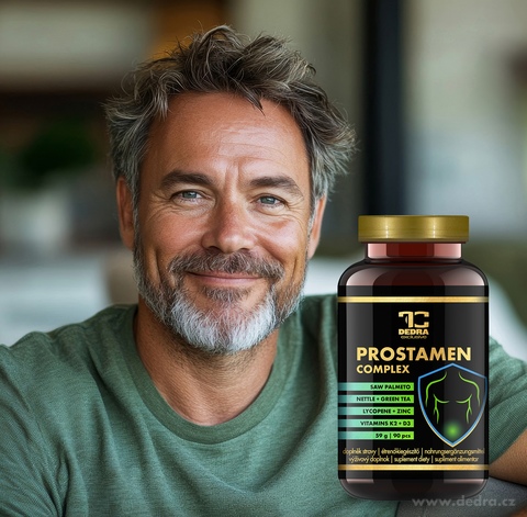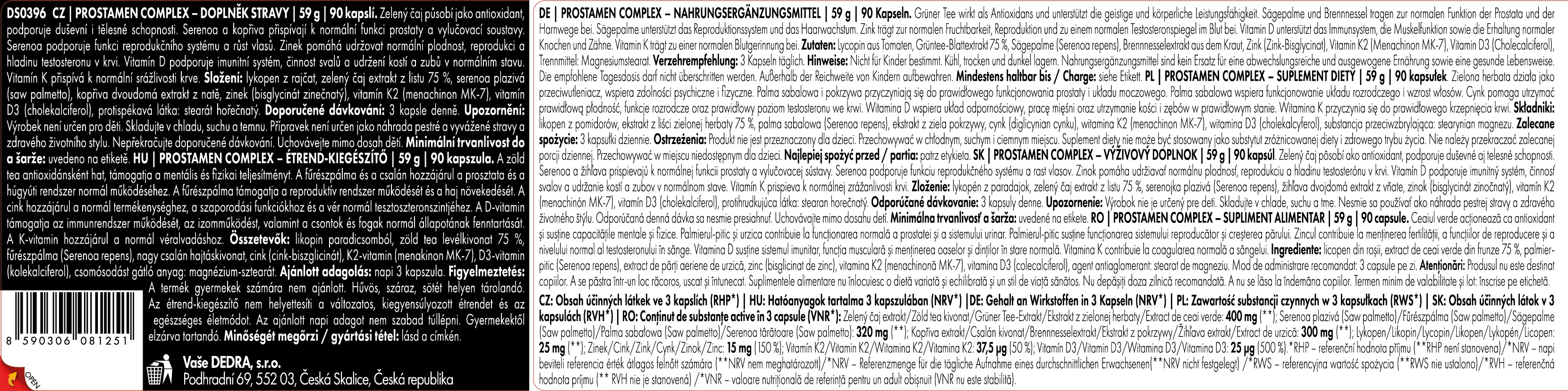 Skład: likopen z pomidorów, ekstrakt z liści zielonej herbaty 75%, serenoa płożąca (saw palmetto), ekstrakt z ziela pokrzywy zwyczajnej, cynk (bisglicynian cynku), substancja przeciwzbrylająca: stearynian magnezu, witamina K2 (menachinon MK-7), witamina D3 (cholekalcyferol).