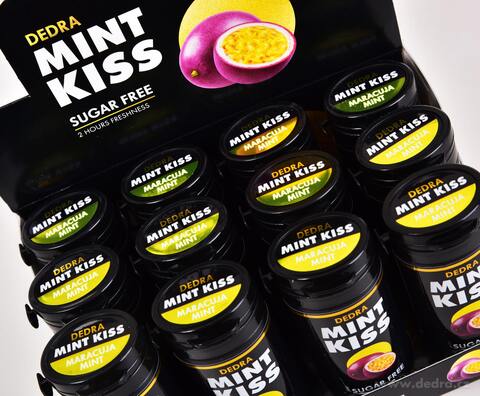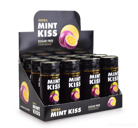 Zestaw 12 szt. miętowe pastylki odświeżające bez cukru MINT KISS, maracuja mint, 28 g x 12.