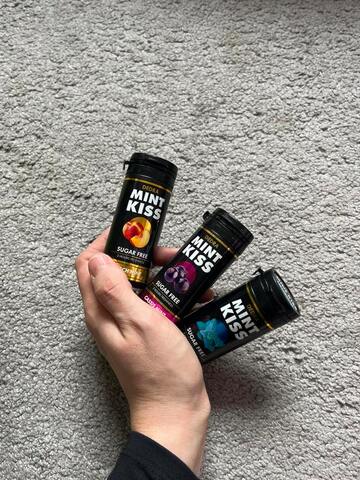 Zestaw 3+1 miętowe pastylki odświeżające bez cukru MINT KISS, peppermint + spearmint + peach mint + cassis mint, 28 g x 4.