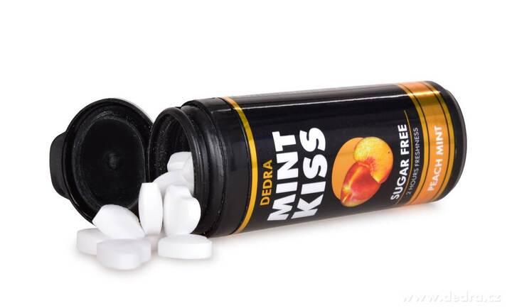 Zestaw 2+1 miętowe pastylki odświeżające bez cukru MINT KISS, peach mint, 28 g x 3.