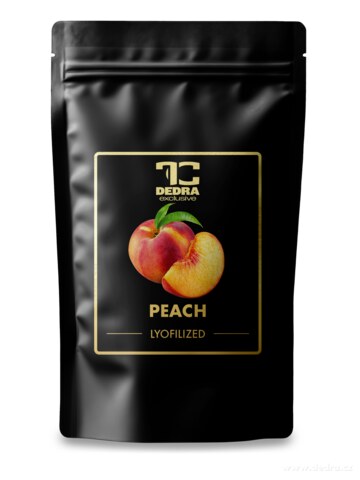 Skład: brzoskwinie suszone mrozem 100%. Bez alergenów. Nie wystawiać na bezpośrednie działanie promieni słonecznych. Przechowywać w suchym miejscu, w temperaturze pokojowej. Uniemożliwić dostęp powietrza za pomocą zamka strunowego.