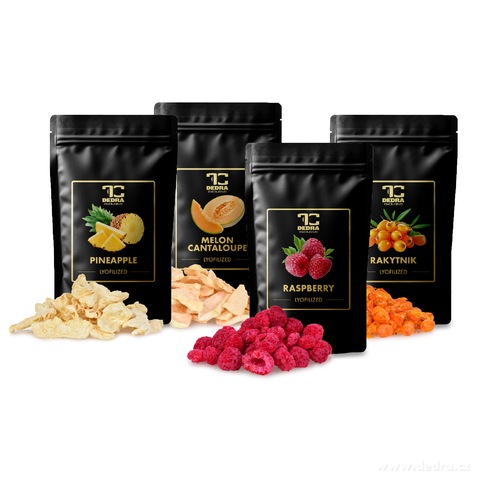 Dostępność poszczególnych rodzajów owoców liofilizowanych zależy od zbiorów i sezonowości. Dlatego może się zdarzyć, że niektóre warianty nie będą zawsze dostępne.