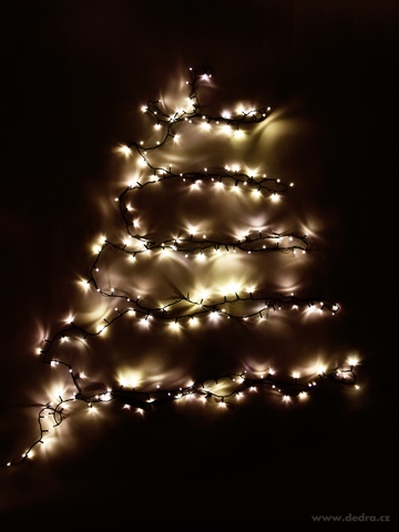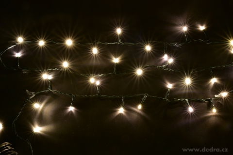 Łańcuch świetlny LED z 200 diodami w ciepłej białej barwie, długość całkowita ok. 13 m.
