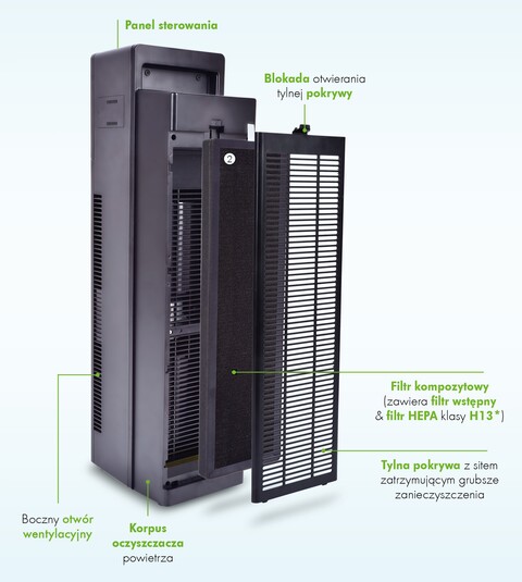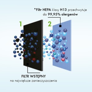 Aby w Twoim domu nie namnażały się pleśń i wirusy, należy powietrze oczyszczać. Filtr HEPA klasy H13 niezawodnie przechwyci do 99,95 % alergenów.