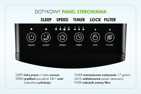 I dodatkowo w gorących miesiącach oczyszczacz powietrza wykorzystasz również jako prakticzny wiarak z trzema poziomami szybkości powietrza + symulacją wiatru (zmiana przepływu powietrza).