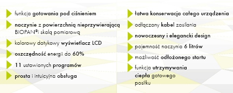 zachowuje ważne substancje i witaminy w pożywieniu. Nadaje się do różnych rodzajów diet, dzięki możliwości gotowania na parze i bez tłuszczu.