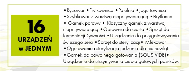 Zastąpi płytę grzewczą, patelnię, brytfannę, garnek, piekarnik i szybkowar.