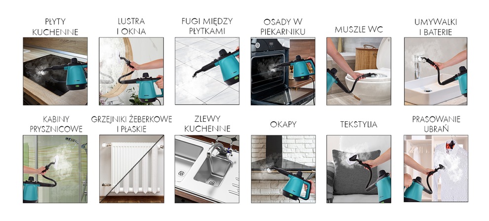 Z łatwością pomoże Ci wyczyścić fugi między płytkami, osady w piekarniku, poradzi sobie z grzejnikami żeberkowymi i płaskimi, pomoże Ci wyczyścić też okna, zlewy kuchenne, wanny, umywalki, baterie a także muszle WC.......