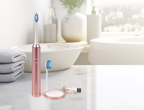Soniczna szczoteczka do zębów SONISSIMO® NEO z podstawą ładującą z kablem USB. Wymiary szczoteczki: długość 23 cm, średnica 2,3 cm. Średnica podstawy ładującej: 5,6 x wys. 0,5 cm. Długość kabla 97 cm.