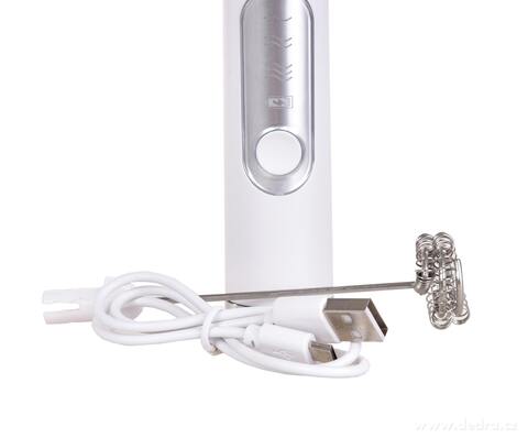 2w1 Poręczny spieniacz do mleka/trzepaczka do jajek, ładowany usb. Połączenie solidnego plastiku i stali nierdzewnej. 3 prędkości obrotów, moc 4W, napięcie wejściowe 5V, prąd wejściowy 1A. W zestawie kabel mikro USB o długości ok. 50 cm.