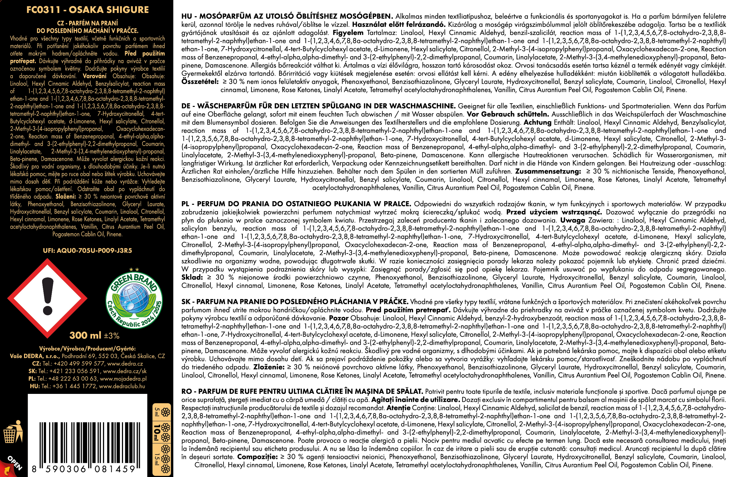 Producent / Importer: Vaše Dedra s. r. o., Podhradní 69, Česká Skalice, Republika Czeska