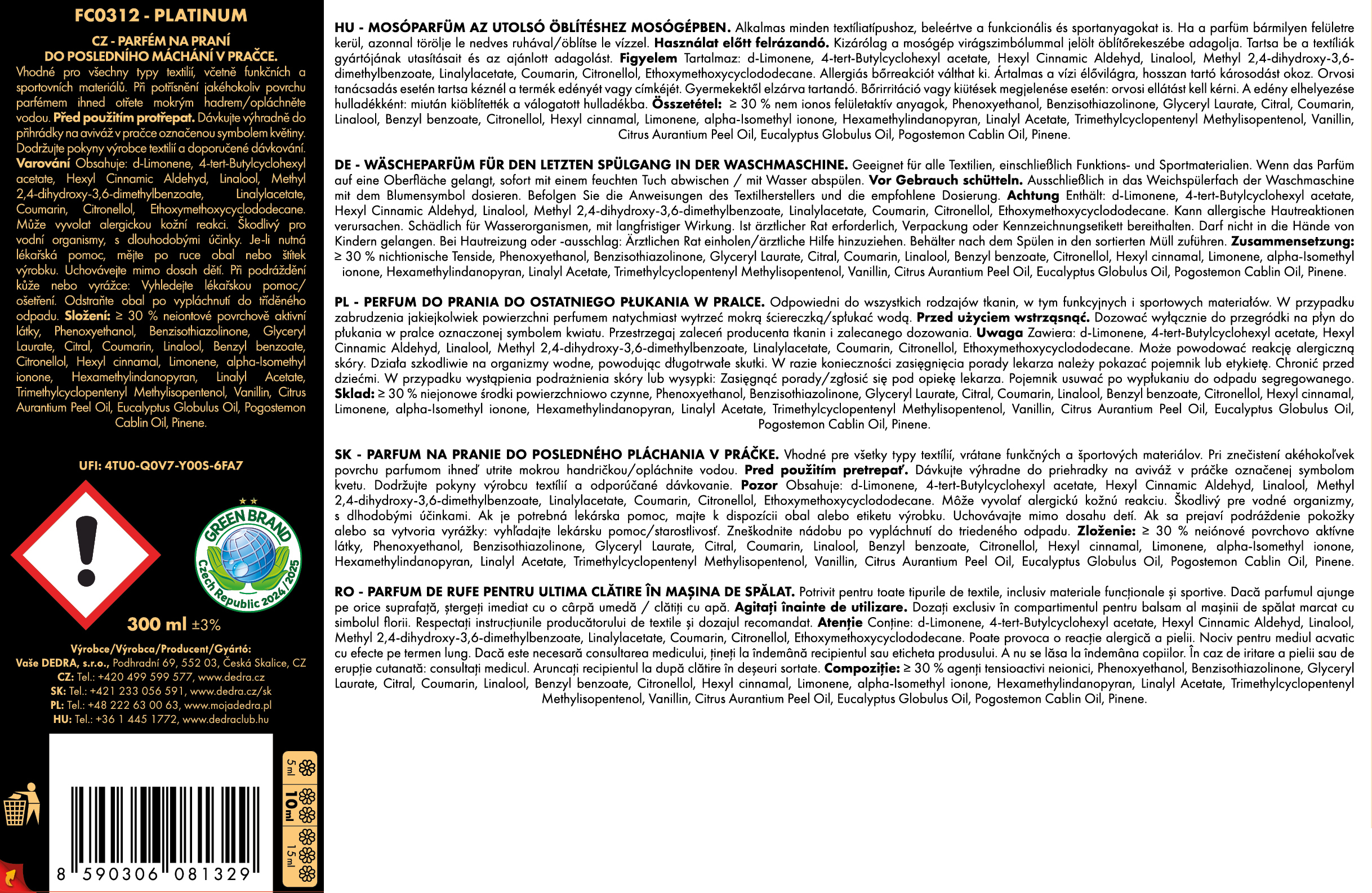 Producent: Vaše Dedra s. r. o., Podhradní 69, Česká Skalice, Česká republika