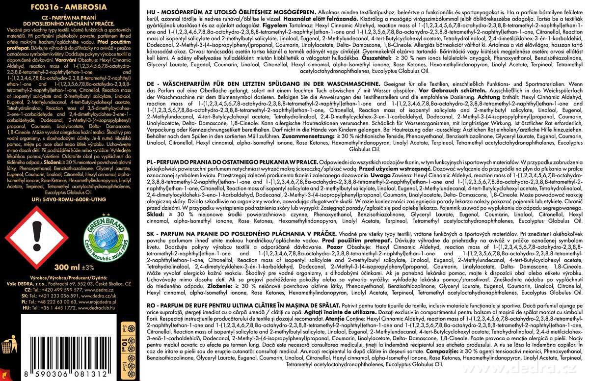 Producent / Importer: Vaše Dedra s. r. o., Podhradní 69, Česká Skalice, Republika Czeska