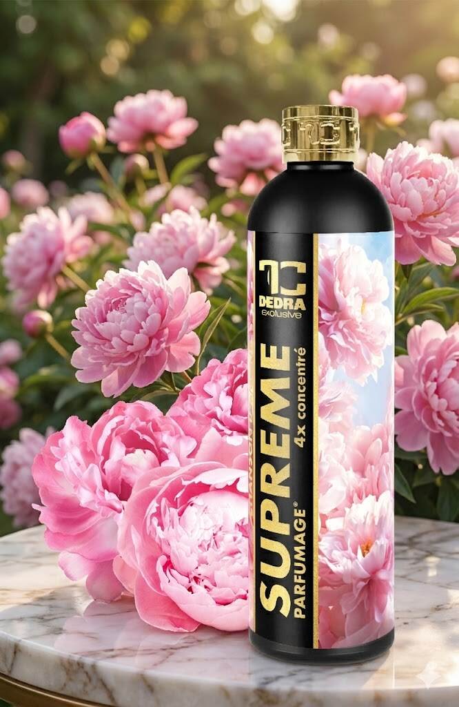 PARFUMAGE SUPREME oparty jest na specjalnej roślinnej bazie rozpuszczalnej w wodzie, która umożliwia całkowite rozpuszczenie zapachu w wodzie. Dzięki temu perfumy podczas prania natychmiast mieszają się z wodą w pralce i równomiernie perfumują tkaniny – bez tłustych pozostałości, bez osadów i bez ryzyka zanieczyszczenia pralki.