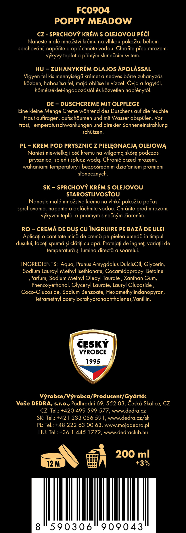 Producent / Importer: Vaše Dedra s. r. o., Podhradní 69, Česká Skalice, Republika Czeska