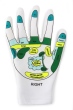 Na każdej dłoni nadrukowany jest zestaw pubktów do masażu,