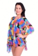 Luźny krój pasuje do każdej figury. Przyda się na plaży, idealnie pasuje włożona na kostium kąpielowy lub jako przewiewna bluzka w lecie. Przewiewna tunika damska z rękawami nietoperz. Rozmiar uniwersalny (S, M, L, XL). 100% poliester Wymiary: 98 x 70 cm.