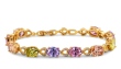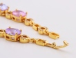 Bransoletka na rękę z cyrkoniami, Kolor ametyst, podwójne zamknięcie, pozłacana 24 Kt.