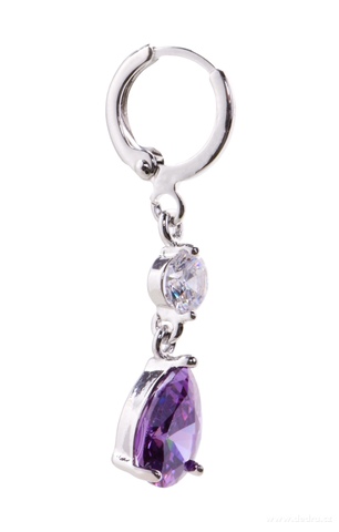 Kolczyki z cyrkoniami, w kolorze ametyst, rodowane