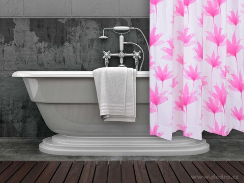 ZASŁONA PRYSZNICOWA z nadrukiem dekoracyjnym.