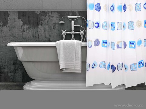 ZASŁONA PRYSZNICOWA z nadrukiem dekoracyjnym.
