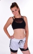 Biustonosz sportowy, czarny z wyjmowanymi wkładkami, bez fiszbin, górna część wyposażona w siateczkę, regulowane ramiączka i paski na krzyżu.