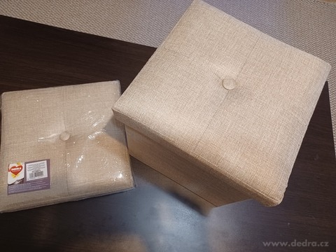 SKŁADANY PUF beżowy melange z miejscem do przechowywania.