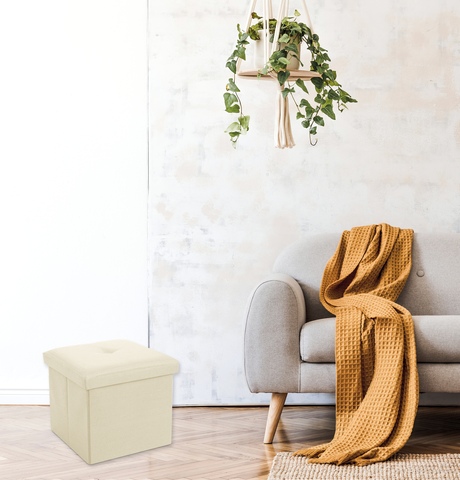 SKŁADANY PUF kremowy z miejscem do przechowywania.