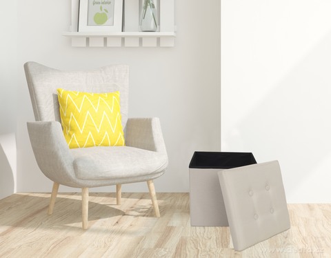 SKŁADANY PUF kremowy z miejscem do przechowywania.