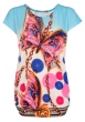 ALLIE Koszulka / tunika motyw z obu stron, przód ozdobiony kamieniami. Prosty krój z opuszczanymi rękawami. Rozmiar uniwersalny (odpowiada rozmiarom M-XXL). Obwód klatki piersiowej ok. 115 cm, długość 75 cm. Miły w dotyku materiał, 100% PES.